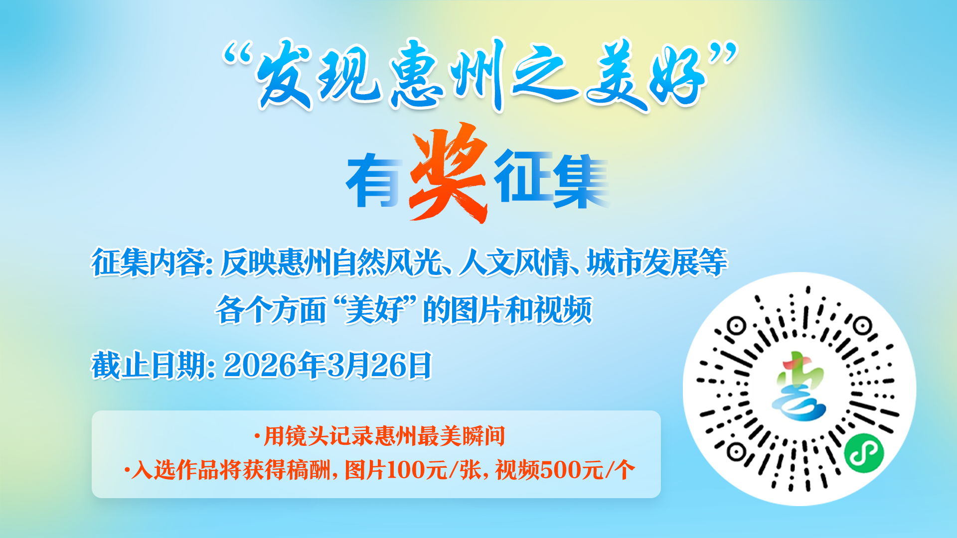 現(xiàn)金獎勵!全民有獎?wù)骷l(fā)現(xiàn)惠州之美好!